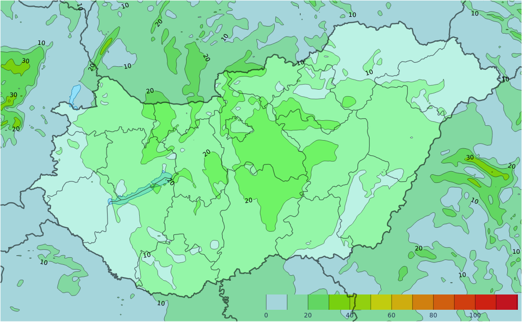 Csütörtökön sok napsütés várható gomolyfelhő-képződéssel, északkeleten kis eséllyel zápor, zivatar előfordulhat. Az északias szél időnként megélénkül, egy-egy erős széllökés is lehet. A legalacsonyabb éjszakai hőmérséklet 10, 18, a csúcshőmérséklet 27, 33 fok között valószínű.
