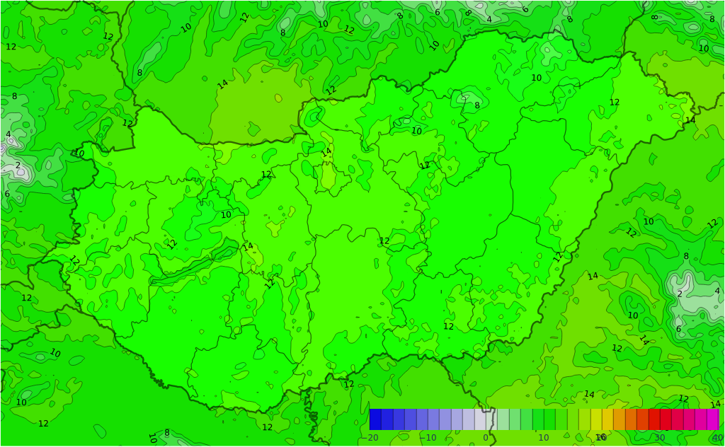 - A legalacsonyabb éjszakai hőmérséklet 11, 16, a legmagasabb nappali hőmérséklet 19, 24 fok között várható.