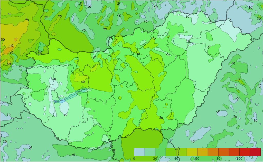 - Többfelé várható eső, zápor, zivatar, helyenként felhőszakadás, jégeső is előfordulhat.