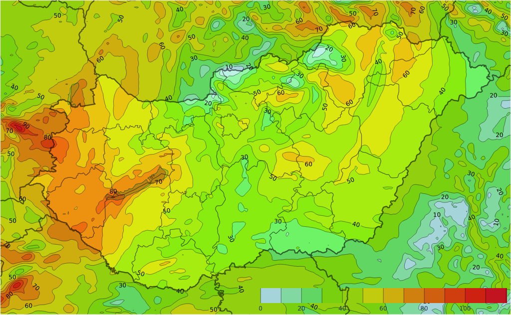 • A keleti, délkeleti szelet többfelé élénk, a Szeged-Győr sávban erős lökések kísérik.