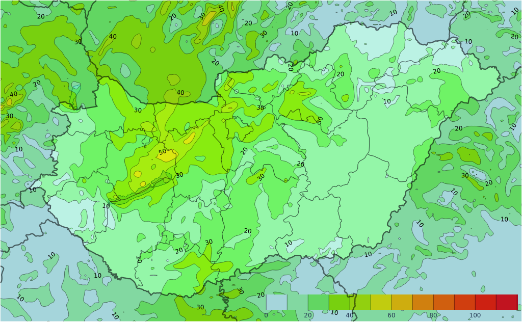 A hidegfront átvonulásával nagy területen megerősödik, helyenként viharossá fokozódik a szél. Helyenként záporok, zivatarok is kialakulnak.