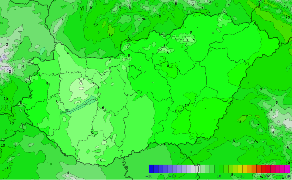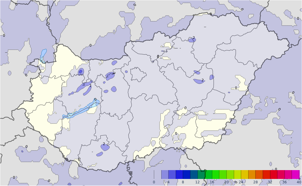 - A front előtt napközben néhol, majd a front mentén már többfelé várható zápor, zivatar, legkisebb valószínűséggel a Tiszántúlon.