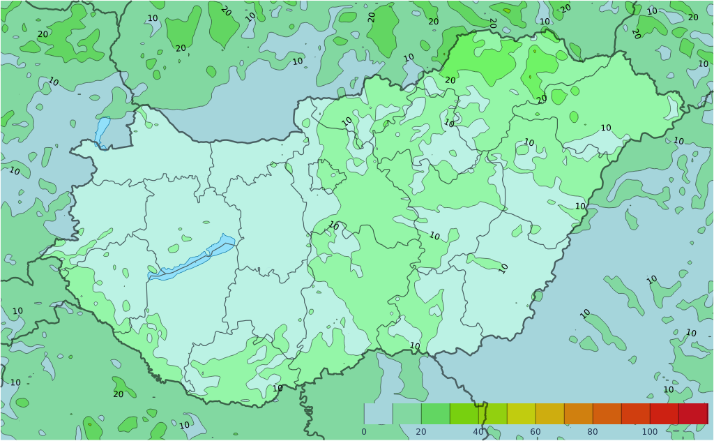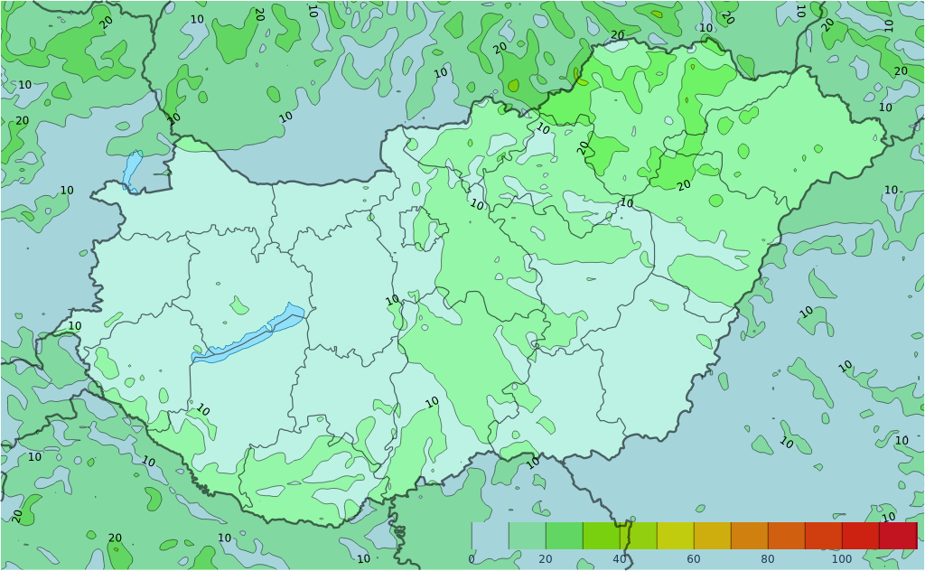 - A Dunántúlon néhol, máshol elszórtan valószínű záporeső. Egy-egy zivatar sem kizárt.