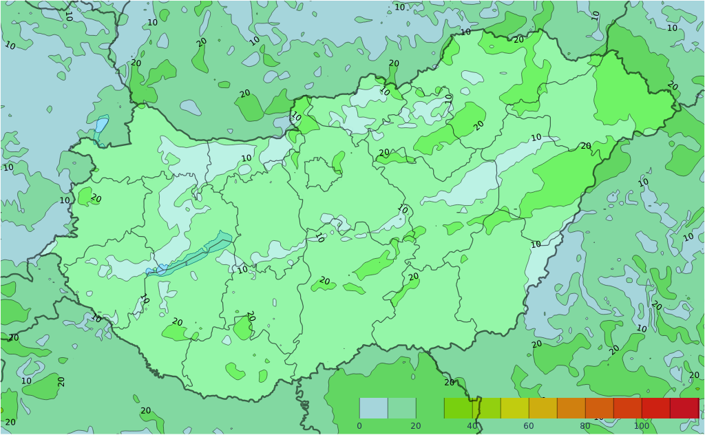 - Összességében több helyen előfordulhat záporeső, zivatar, nagyobb számban az ország déli, délkeleti felén.
