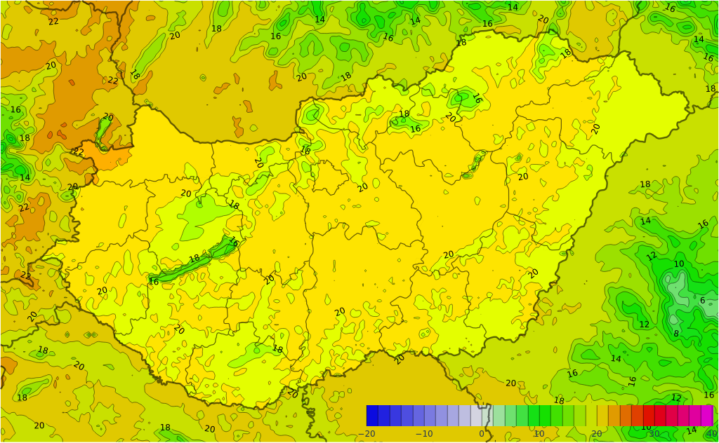 Kedden az erőteljes gomolyfelhő-képződés és a fátyolfelhők mellett kevesebb napsütésre számíthatunk. Több helyen előfordulhat záporeső, zivatar. Sokfelé élénk, időnként erős lökések kísérik a délnyugati, majd az északnyugati, északi szelet. Zivatar környékén is megerősödhet a szél. A minimum 8, 16, a maximum-hőmérséklet általában 23 és 28 fok között alakul, csupán a tartósabban csapadékos tájakon lehet ennél hűvösebb.