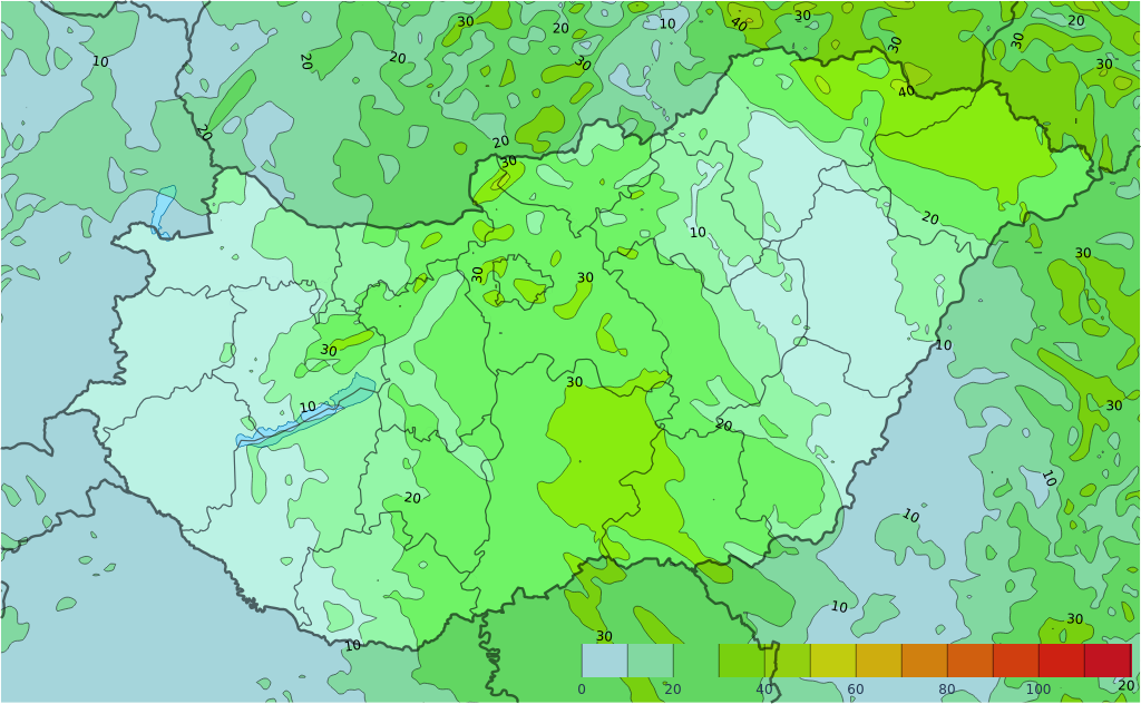 - Északnyugaton, északon a legnagyobb, délkeleten a legkisebb a csapadék esélye.