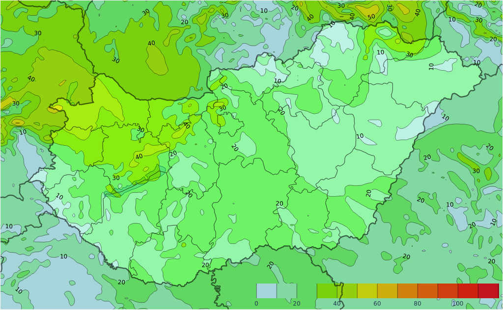 - Elsősorban a Dunától keletre fordulhat elő zápor, zivatar, a Tiszántúlon van esély tartós esőre is.