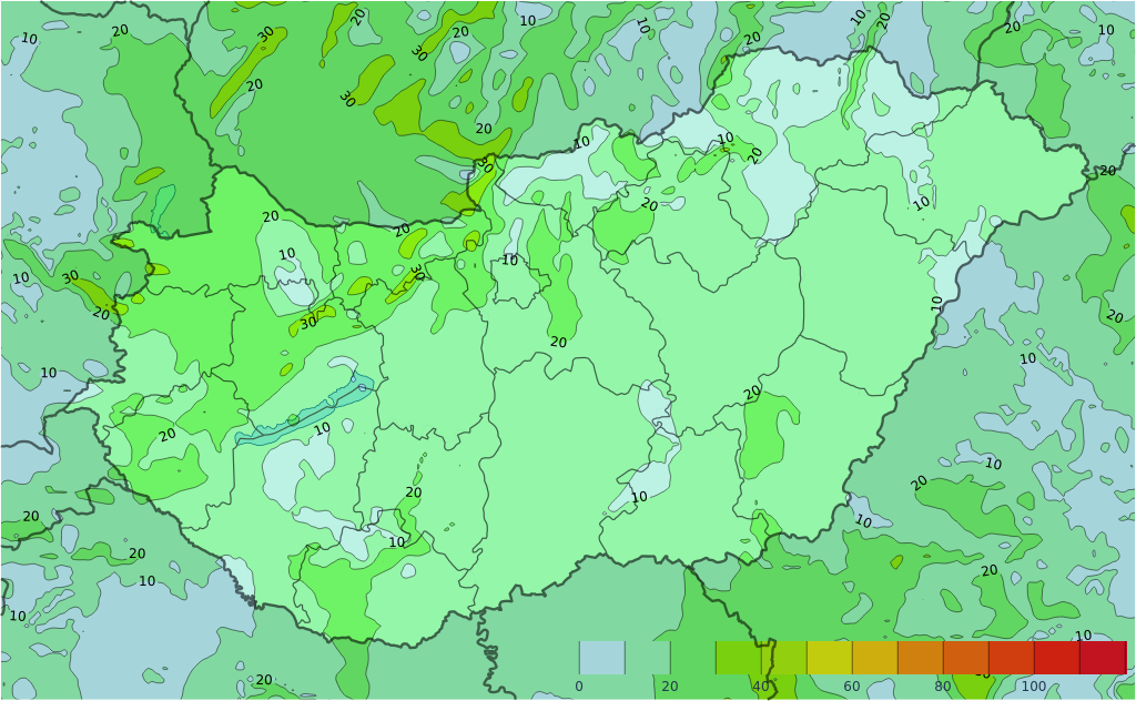 Szerdán északkelet felől átmenetileg erősen megnövekszik, megvastagszik a felhőzet, így általában felhős idő várható, de délelőtt délen és nyugaton, míg délután északkeleten lehet több napsütés. Csapadék nem valószínű, legfeljebb egy-egy zápor fordulhat elő. Az északkeleti, északi szelet még sokfelé élénk, főleg a Dunától keletre erős lökések kísérhetik. A minimum-hőmérséklet általában 4, 9 fok között alakul, de a szélvédett, kevésbé felhős helyeken fagypont közelébe is lehűlhet a levegő. A csúcshőmérséklet 13, 18 fok között várható.