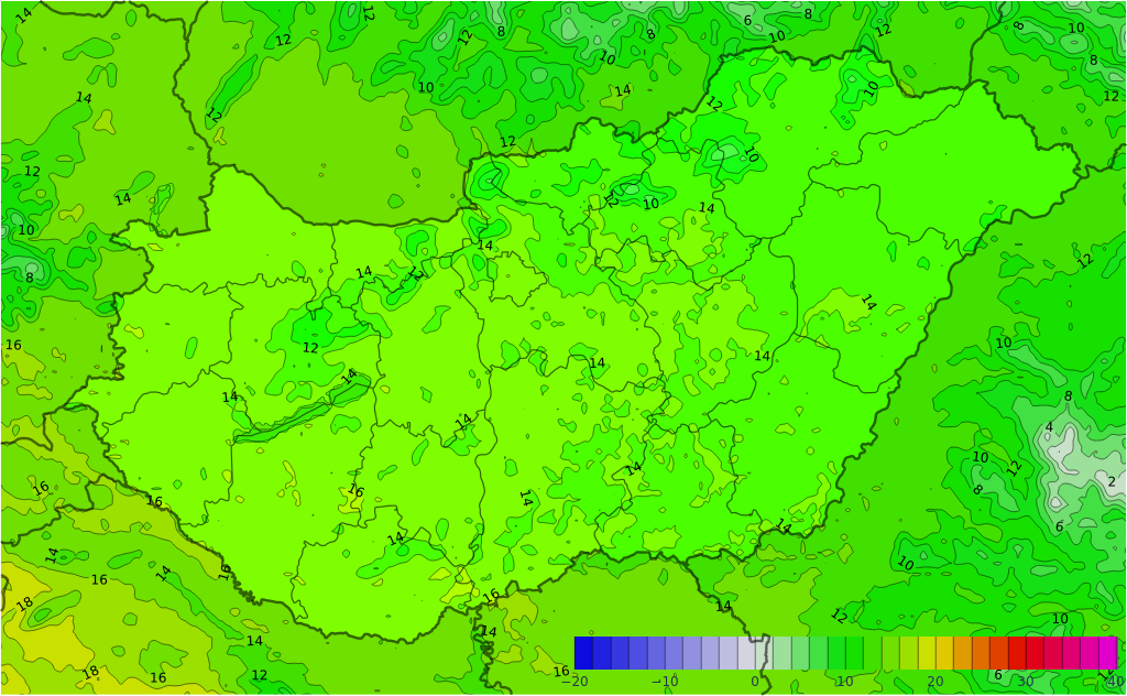- A legalacsonyabb éjszakai hőmérséklet 10 és 17, a legmagasabb nappali hőmérséklet 23 és 27 fok között valószínű.