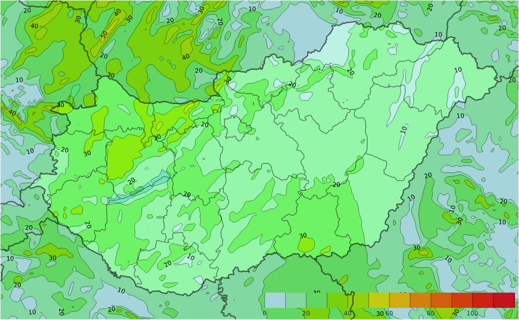 - Elszórtan – legkisebb eséllyel a Tiszántúlon – alakul ki zápor, néhol zivatar.