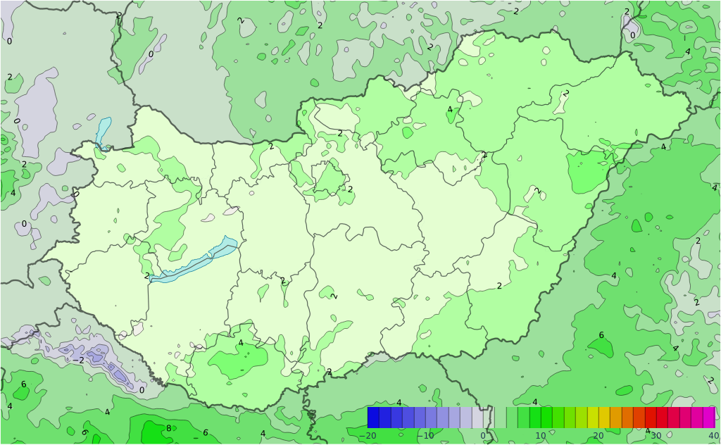 Hétfőn derült, napos, illetve borult, párás területek egyaránt lesznek. Utóbbira továbbra is egy északnyugat-délkeleti tengely mentén van nagyobb az esély. A borult tájakon hószállingózás, ónos szitálás előfordulhat. Többnyire mérsékelt marad a légmozgás. A minimum általában -12 és -5 fok között alakul, de az északkeleti, északi harmadban, illetve délnyugaton ennél több fokkal alacsonyabb értékek is előfordulhatnak, néhol -20 fok közelébe süllyedhet a hőmérséklet. A csúcsérték -8, 0 fok között valószínű.