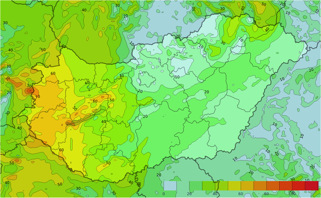 - Az északnyugati, északi szél nagy területen megerősödik, az Alpokalja térségében viharossá is fokozódhat.