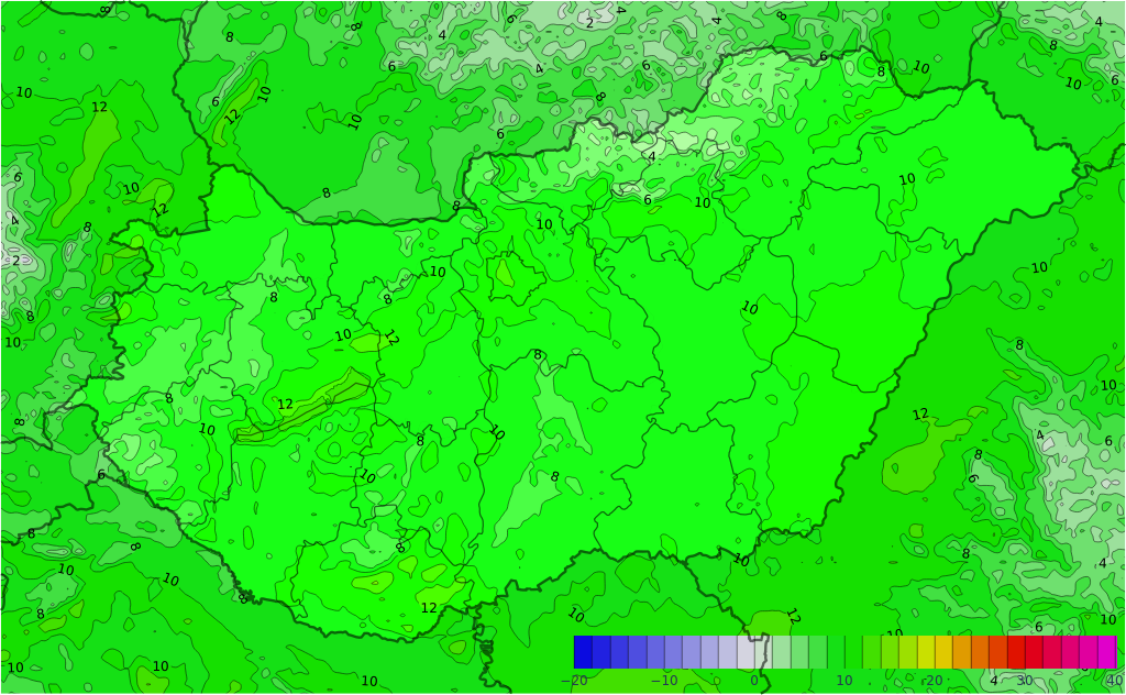 Kedden sok felhőre számíthatunk, a nap második felétől az ország északkeleti felén csökkenhet a felhőzet, ezért arrafelé több, máshol legfeljebb néhány óra napsütés valószínű. Elszórtan alakulhat ki zápor. Az északkeleti, északi szél nagy területen lesz erős, a Nyugat-Dunántúlon és északkeleten viharos széllökés is lehet. A minimum-hőmérséklet 4, 9 fok között valószínű. A csúcsérték 11, 19 fok között alakul, keleten lesz a melegebb.