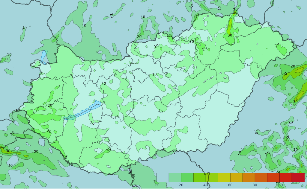 • A csapadék mennyisége a Tiszántúlon és az északkeleti megyékben lehet jelentős.