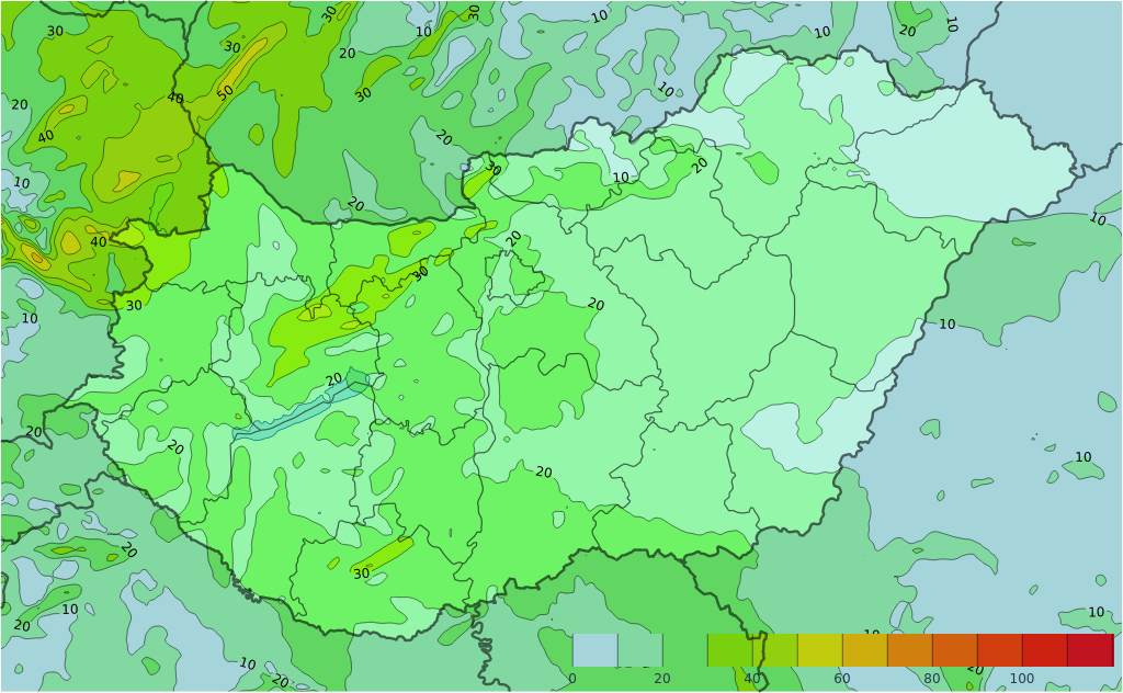 Szombaton az összefüggő, vastag felhőzet tovább terjeszkedve délutánra az északkeleti határvidéket is eléri – ekkortól viszont a Dunántúlon nyugat felől egyre szakadozottabbá válhat a felhőtakaró. Reggel, délelőtt is előfordulhat már helyenként (saras) eső, zápor, a nap második felében viszont már főként a Dunától keletre kiterjedtebb esőzésre kell számítani. A csapadék előfordulási esélye a nyugati, délnyugati vidékeken a legkisebb. A déli, délkeleti szél a Dunántúlon nagy területen megerősödik, néhol viharos lökések is előfordulhatnak. A legmagasabb nappali hőmérséklet döntően 12 és 19 fok között várható, de az Északi-középhegység tágabb környezetében, valamint az Észak-Alföldön helyenként ennél több fokkal hidegebb is lehet.