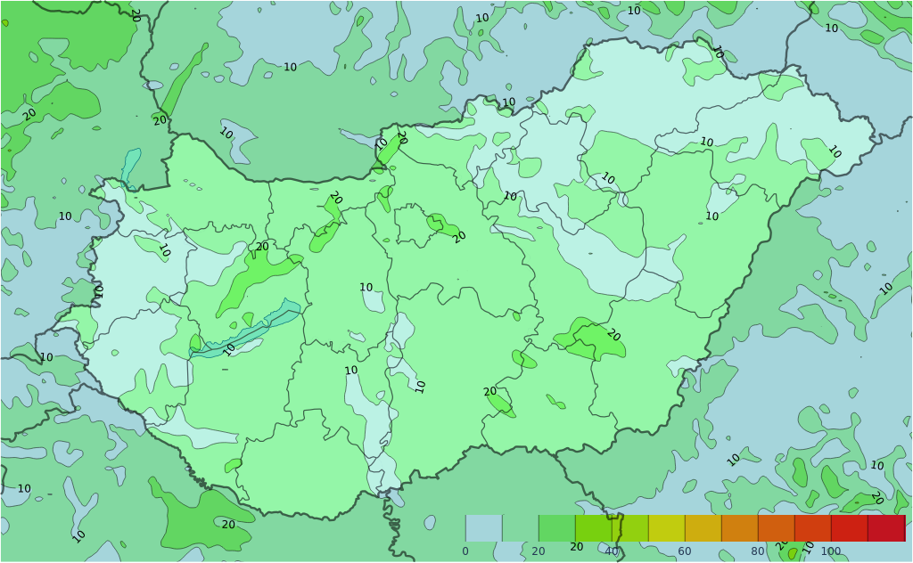Pénteken változóan felhős idő várható többórás napsütéssel. Éjjel a front mentén és a nap első felében elszórtan lehet zápor, zivatar, a déli óráktól kezdve azonban már inkább csak néhol eshet. Az északnyugati szelet többfelé kísérhetik erős lökések. A hőmérséklet hajnalban döntően 18 és 24, délután 28 és 35 fok között valószínű.