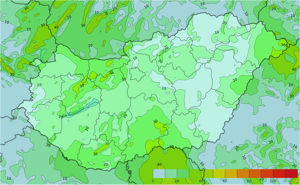 Szerdán nagyrészt erősen felhős vagy borult lesz az ég, napközben inkább csak kisebb, estétől viszont már nagyobb területen is szakadozhat a felhőzet. A gyengülő csapadékzóna tovább tevődik északkelet, kelet felé, késő délutánra a legtöbb helyen megszűnik az eső. Halmazállapot-váltás elsősorban az északi hegyekben fordulhat elő. Az északnyugati, nyugati szelet az Észak-Dunántúlon erős, néhol viharos lökések kísérhetik.A legmagasabb nappali hőmérséklet általában 3 és 9 fok között változik, a keleti határszélen lehet egy-két fokkal melegebb. Késő este -1, +5 fok valószínű.