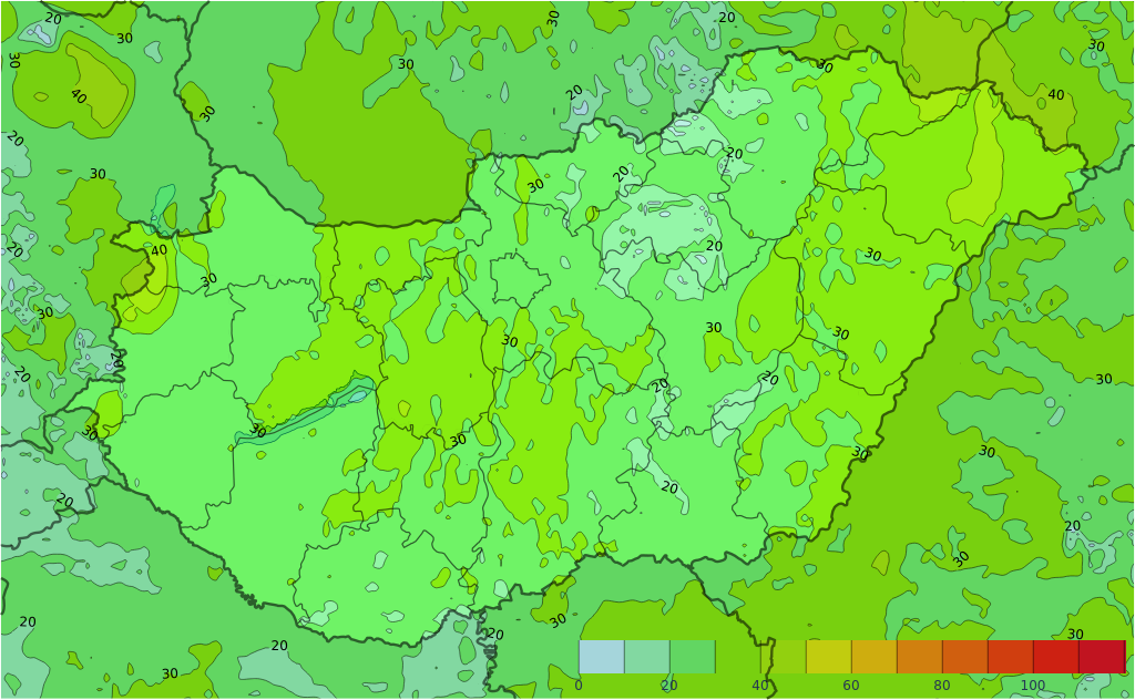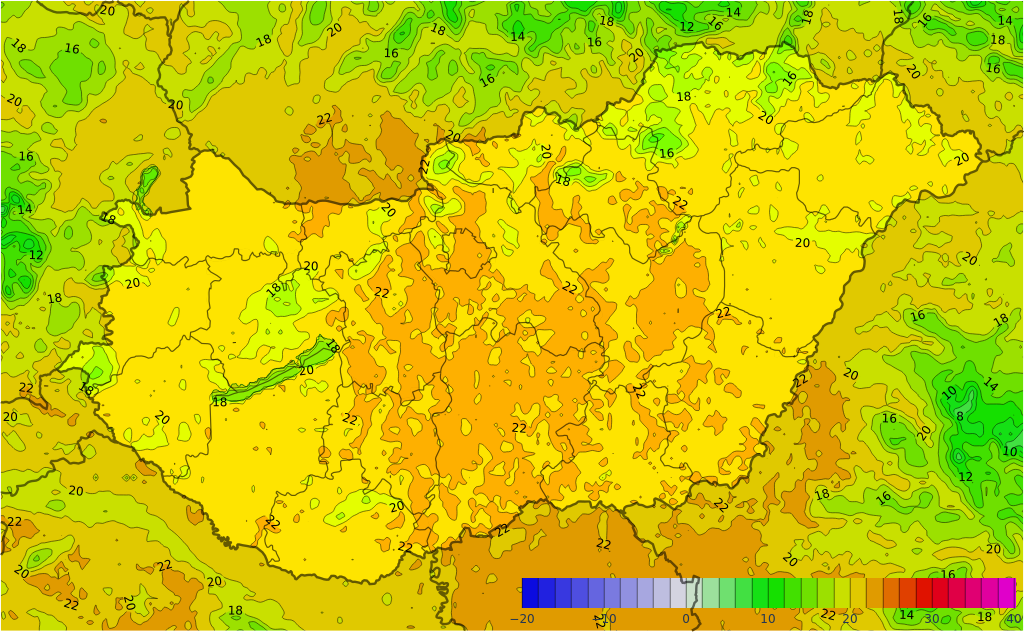 Kedden erőteljes gomolyfelhő-képződés és fátyolfelhők mellett általában kevés napsütés valószínű. Sokfelé várható eső, zápor, zivatar. Helyenként felhőszakadás, jégeső is előfordul. Többfelé jelentős mennyiségű csapadék hullhat. A délkeleti szél megélénkül, helyeként megerősödik, zivatarban viharos lökések is lehetnek. A hőmérséklet hajnalban 11, 17, délután 22, 29 fok között alakul.