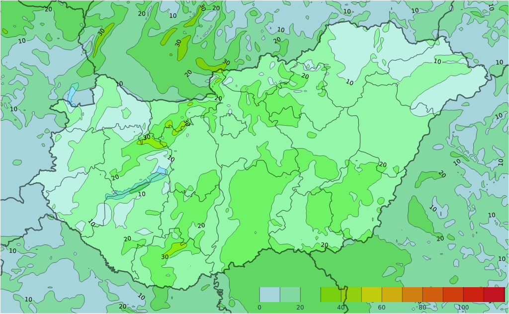 - A nap első felében több helyen várható eső, zápor, zivatar. A nap második felében főleg a Dunától keletre valószínű csapadék, de ott is egyre kevesebb helyen.