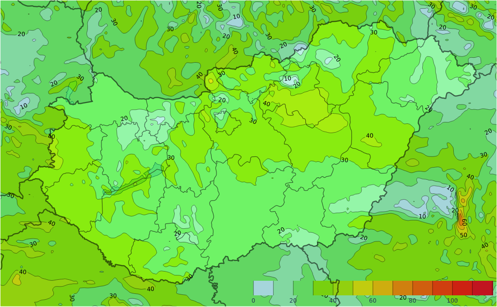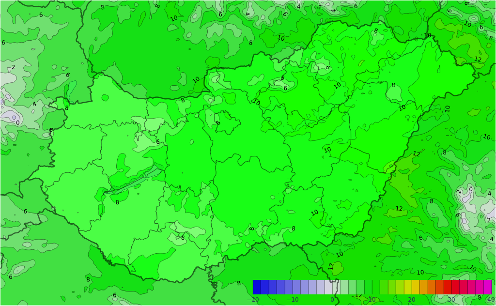 A csapadék súlypontja tovább tevődik délnyugat felé, az északkeleti harmadban már száraz idő valószínű. Másutt összességében több helyen fordulhat elő időszakos gyenge intenzitású csapadék – jellemzően havazásra, hószállingózásra lehet számítani, de a déli és keleti megyékben nappal havas eső, eső, szitálás is lehet.