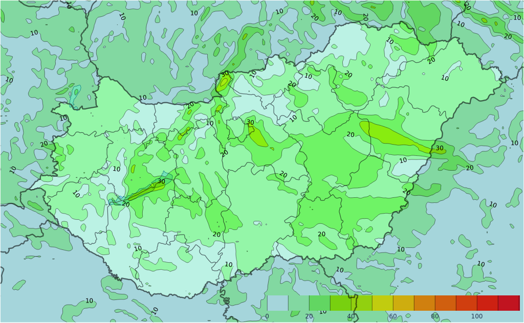 a Nyugat-Dunántúlon helyenként gyenge eső, zápor is előfordulhat belőle.
