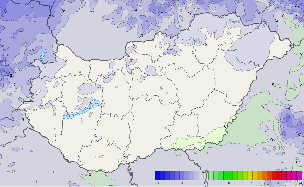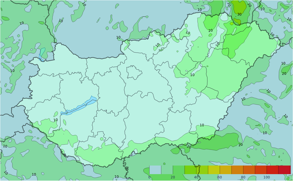 Kedden változatlanul döntően erősen felhős vagy borult lesz az ég, hosszabb szakadozások a felhőzetben az Észak-Dunántúlon lehetnek. Kelet, délkelet felől újra egyre többfelé várható csapadék: kezdetben vegyesen havazás, havas eső, eső, majd egyre inkább a folyékony halmazállapot válik jellemzővé. Az eddig kialakuló hóréteg síkvidéken olvadni fog. Az északnyugati, nyugati tájakon, valamint az északi határvidéken a legkisebb a csapadék előfordulási esélye. Sokfelé erős, a Dunántúlon és helyenként északkeleten viharos lesz az északias irányú szél. A legmagasabb nappali hőmérséklet 1 és 6 fok között alakul.