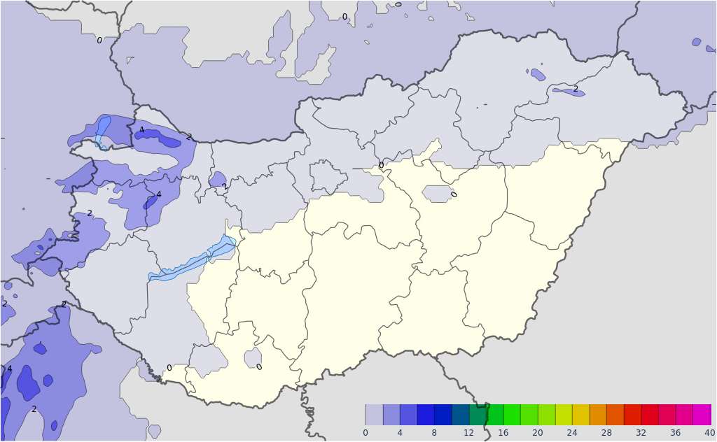 Vasárnap túlnyomóan borult lesz az ég, keleten lehet szakadozottabb, vékonyabb a felhőzet. Délelőtt az Észak-Dunántúlon egyre nagyobb területen vált az eső vegyes halmazállapotú csapadékba, amely során átmeneti jelleggel ónos eső is kialakulhat. Másutt egyre inkább csökken a csapadékhajlam. Késő délutánra dél, délkelet felé tolódik a halmazállapot-váltás határa, estére, késő estére már a havazás lehet a meghatározó csapadékforma, esetleg a középső országrészben lehet még eső, havas eső. A északi szél a középső területeket leszámítva erős, többfelé viharos lesz. Kiemelten a magasabban fekvő részeken erősen viharos széllökések is lehetnek. A legmagasabb nappali hőmérséklet 0 és +10 fok között várható. Délkeleten lesz a legenyhébb az idő, néhol pedig délelőtt áll be a maximum. A hideg levegő érkezésével a Nyugat-Dunántúlon reggeltől, másutt a déli óráktól csökken a hőmérséklet.