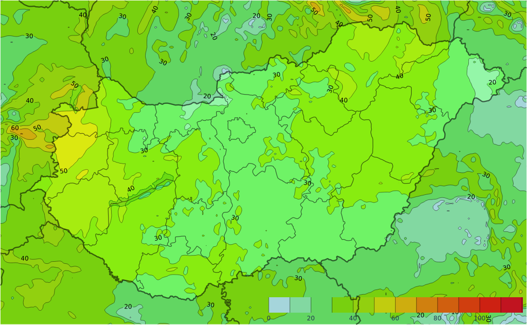 Csütörtökön délelőtt még döntően derült, napos idő várható, majd napközben gomolyfelhők képződnek, illetve nyugat felől magasszintű felhőzet is érkezik. Estig nem lesz csapadék, estétől azonban a nyugati, északnyugati megyékben már kell záporra, zivatarra számítani. A változó irányú szél estig mérsékelt marad, estétől azonban északnyugat felől a Dunántúlon északnyugatira, északira fordul a szél, és akár viharossá is fokozódhat. A legmagasabb nappali hőmérséklet többnyire 34 és 39 fok között valószínű, de az északkeleti megyékben csak 31, 33 fok lehet a maximum. Késő este 25, 30 fok valószínű, amely a front érkezésével gyorsan csökken.