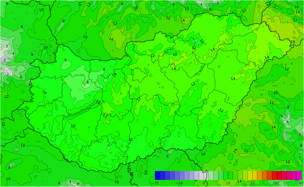 Pénteken hidegfront szakadozott felhőzete halad keleti irányba, a front vonulását záporok, zivatarok kísérik. Ennek délutáni távozását követően is időnként erőteljes marad a gomolyfelhő-képződés a napsütés mellett, amelyből főként északkeleten alakulhat ki záporeső, zivatar. A hidegfront mentén főként a Dunántúlon és a középső országrészben sokfelé viharos északnyugati szél a nappali órákra valamelyest veszít erejéből, de továbbra is nagy területen kísérhetik erős lökések. A hőmérséklet hajnalban döntően 18 és 24, délután 28 és 35 fok között valószínű.