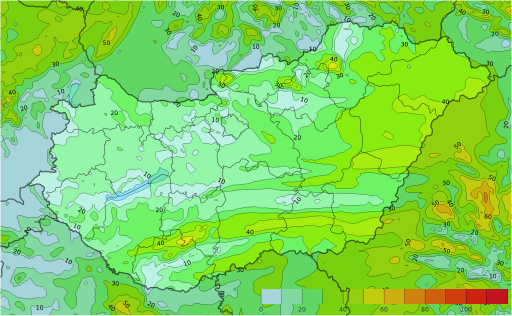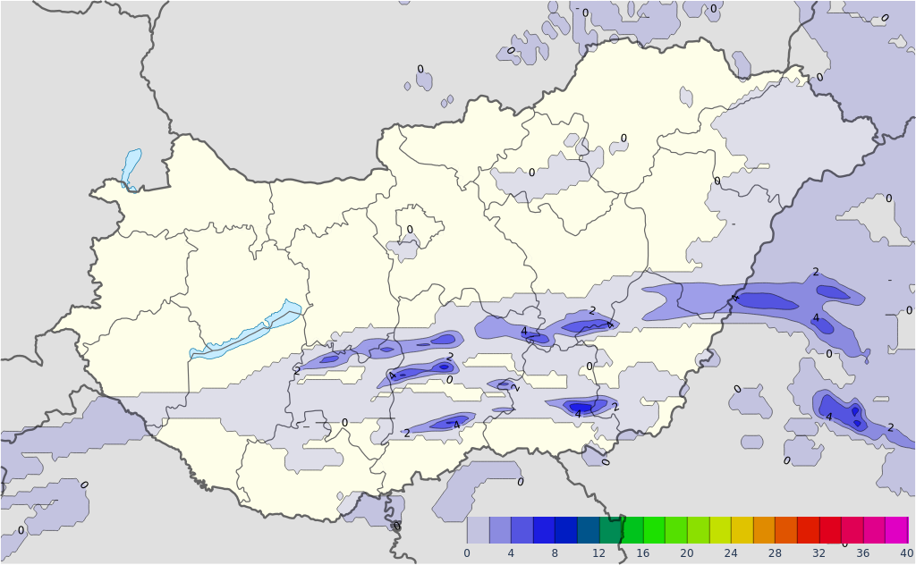 Pénteken napközben a Tiszántúlon fordulhat elő vegyes halmazállapotú csapadék (jellemzően havas eső), kisebb körzetekben havazás (lepel-2 cm). Emellett a déli országrészben lehet tartósabb csapadéktevékenységre számítani, melyből kiemelten Baranya déli felén reggelig területi átlagban 20 mm-t elérő vagy meghaladó mennyiségű csapadék hullhat. Az esti óráktól az ország déli felében az eső folyamatosan havas esőbe, az éjféli órák környékén egyre többfelé havazásba válthat. A szombat reggeli, délelőtti órákig a déli országrészben jellemzően lepel-3 cm, kiemelten délnyugaton néhol ezt meghaladó mennyiségű hó hullhat.