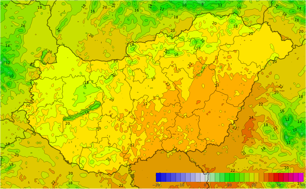 Március 9. (Hétfő) A kontinens nagy része fölé továbbra is afrikai eredetű, szokatlanul enyhe levegő áramlik. Magyarországon is az átlagosnál jóval melegebb, igazi tavaszi idő várható, ugyanakkor a térképen látható keleti "hidegbetörés" arra figyelmeztet, hogy a tavaszi korai hőhullámot a későbbiekben egy komolyabb visszahűlés zárhatja le.