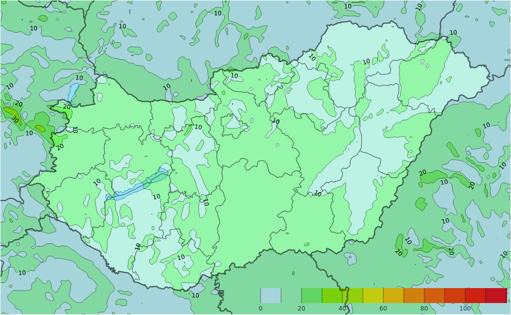 Pénteken délelőtt még főként a déli országrészben, valamint a Tiszántúlon lehet zivatarokra számítani szélerősödés, kisebb méretű jég (< 2 cm) és intenzív csapadék kíséretében. Később, hozzávetőlegesen a déli óráktól egy összeáramlás mentén az északkeleti tájainkon képződhetnek újból zivaratok, melyek közül egy-egy intenzív is lehet ( ~ 1-2 cm jég, > 70 km/h széllökés, ~25 mm csapadék). Este egy hidegfront éri el északnyugati területeinket, határsára főként a Dunántúl nyugati, északnyugati részein fordulhat elő néhány zivatar viharos széllökés (> 60 km/h) kíséretében.