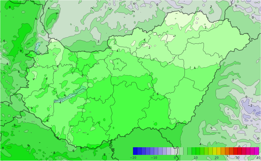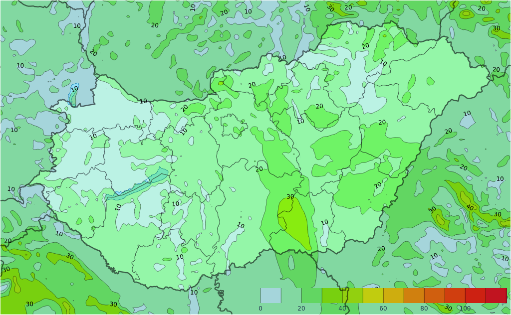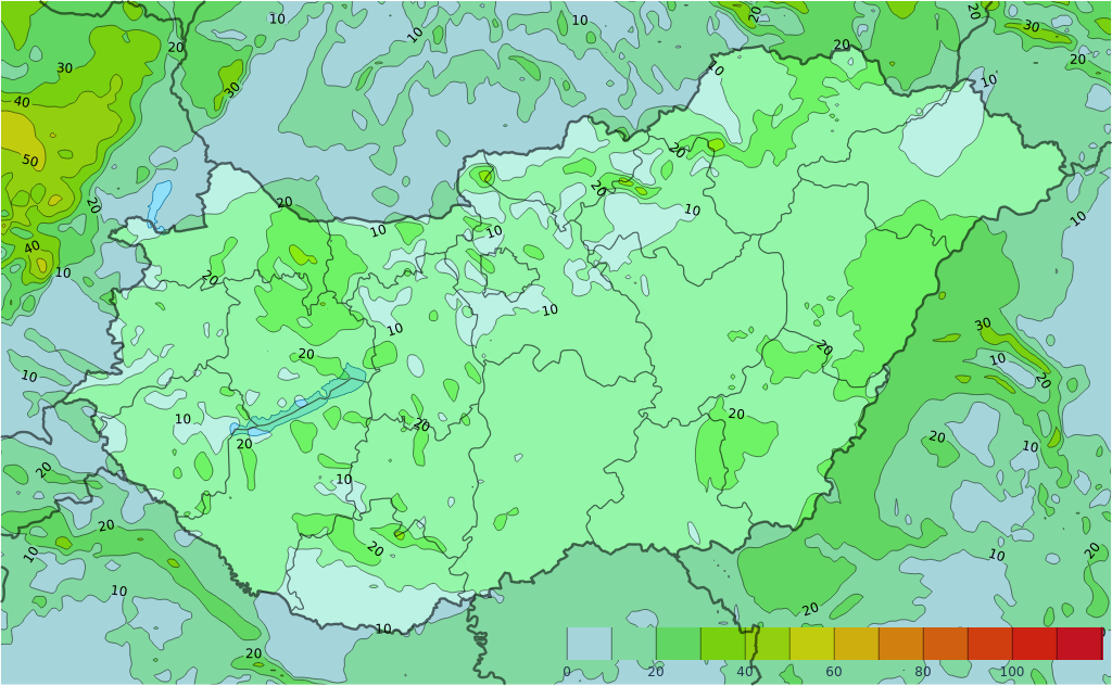 Délutántól keleten, északkeleten (hozzávetőlegesen a Békéscsaba-Eger vonaltól keletre) elszórtan várható zivatar. A zivatarokat egy-egy helyen felhőszakadás (rövid idő alatt 20-30 milliméter), jégeső és 50-80 km/órás széllökés kísérheti. A Nyugat-Dunántúlon, illetve délnyugaton késő délutántól labilizálódik a légkör, így nagyobb eséllyel csak este, késő este valószínű néhol zivatar kialakulása.