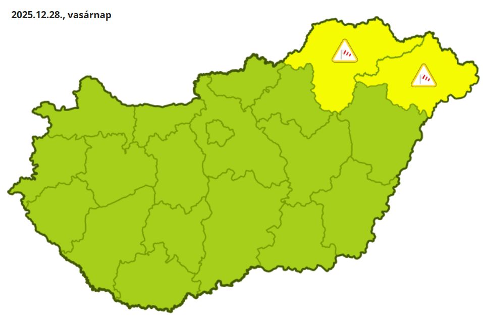 A HungaroMet figyelmeztetést adott ki vasárnapra a viharossá fokozó szél miatt Szabolcs-Szatmár-Bereg és Borsod-Abaúj-Zemplén vármegyére.