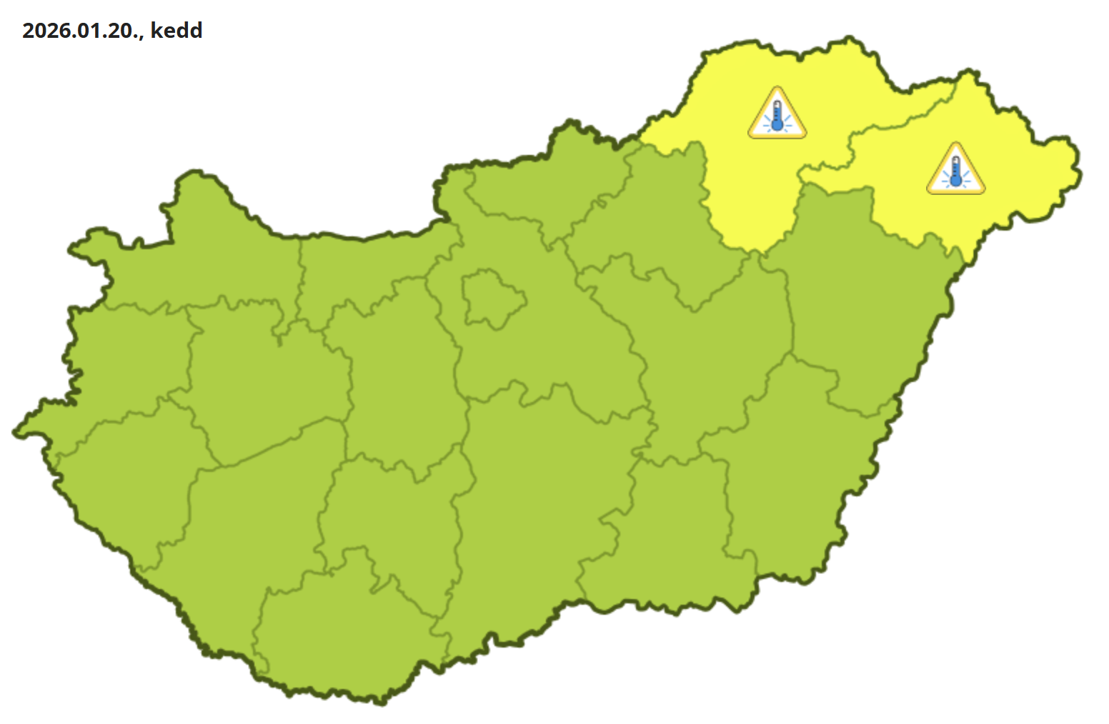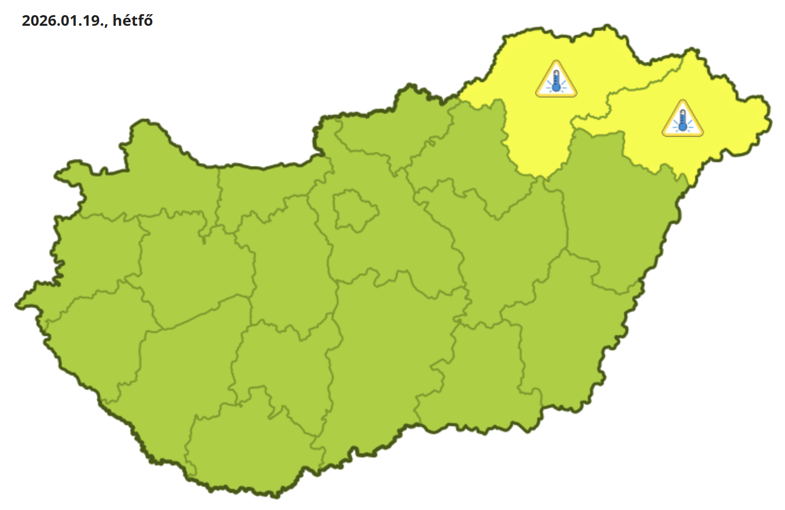 A HungaroMet elsőfokú figyelmeztetést adott ki az extrém hideg miatt hétfőre és keddre Borsod-Abaúj-Zemplén és Szabolcs-Szatmár-Bereg vármegyére.