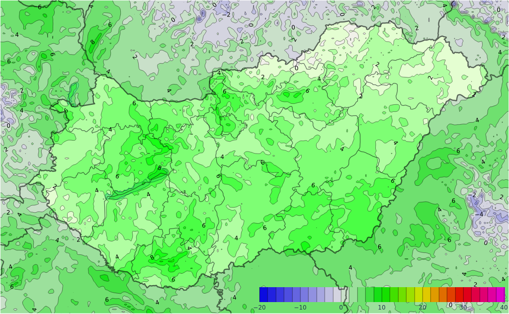 Térképen mutatjuk, ahogy a tavaszi idő télies fordulatot vesz. A térképeken az ilyenkor szokásostól való eltérést lehet látni. A kékes árnyalatok az átlagnál hűvösebb, míg a pirosas árnyalatok az átlagnál enyhébb hőmérsékletet jelölik.