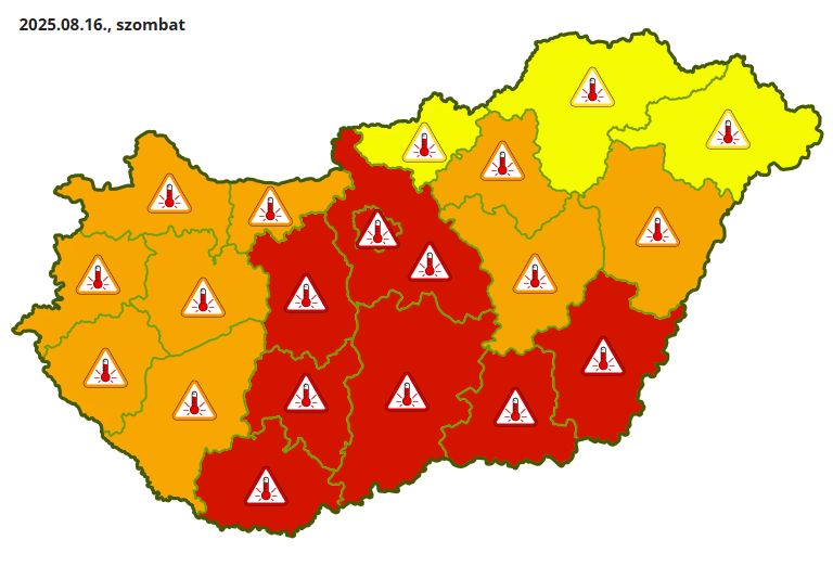 2025. augusztus. 15 10:52A közeledő hidegfont előtt szombaton erősödik a felmelegedés, országszerte hőségre figyelmeztetnek, középen és délen pedig a legmagasabb fokú figyelmeztetés érvényes.