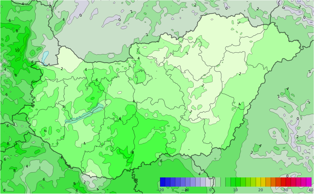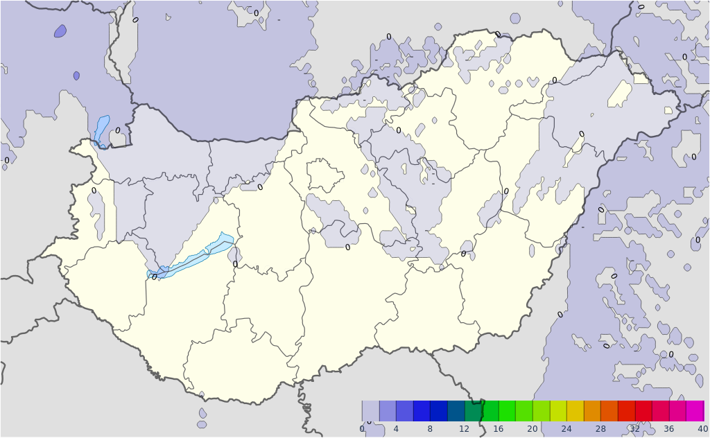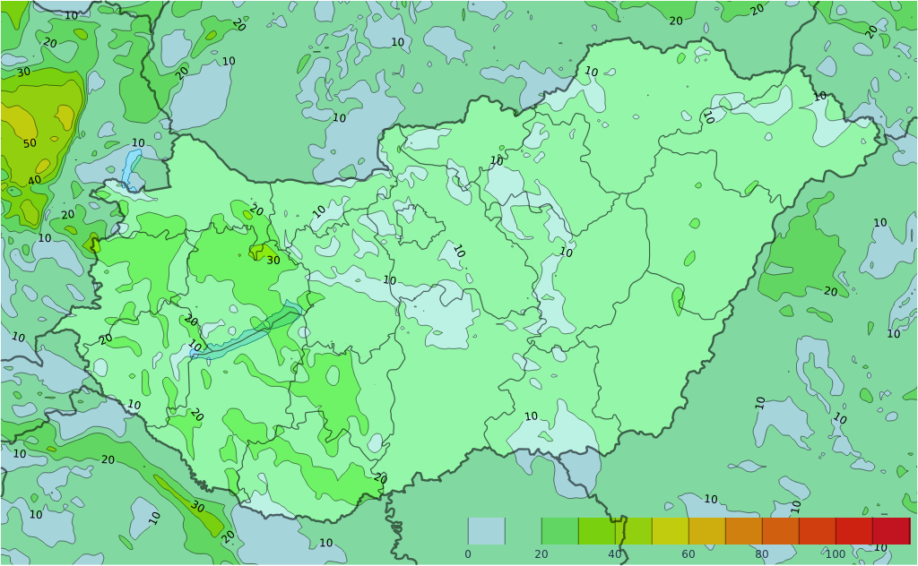 Hétfőn a délutáni órákban délnyugat felől egy intenzív csapadéktömb éri el az országot, melyből éjfélig a Dunántúlon nagy területen jelentős mennyiségű (20-30 milliméter) csapadék hullhat, de elsősorban a délnyugati megyékben ennél több, 30 millimétert meghaladó csapadékösszegek is előfordulhatnak. Az intenzív csapadékzónához kapcsolódóan a délutáni óráktól kezdve a középső országrészben zivatarok is kialakulhatnak, melyeket viharos lökések (60-80 km/óra), illetve intenzív csapadék kísérhet. A keleti megyékben még hétfőn is elérheti a napi középhőmérséklet a 25 fokot. A nagy mennyiségű eső miatt másodfokú figyelmeztetés érvényes hétfőn Zala és Somogy megyékben, Vas, Veszprém, Fejér, Tolna és Baranya megyében pedig elsőfokú figyelmeztetés érvényes. Zivatarok kialakulásának veszélyére Somogy, Tolna, Baranya, Fejér, Bács-Kiskun, Pest és Nógrád megyében figyelmeztetnek. A 25 fokot várhatóan meghaladó középhőmérséklet miatt Szabolcs-Szatmár-Bereg, Hajdú-Bihar és Békés megyében érvényes figyelmeztetés.