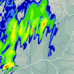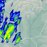 Délnyugat, nyugat felől egyre intenzívebbé válik a felhőképződés, de legalább néhány órás napsütés lesz az ország döntő részén. Több hullámban várhatóak zivatarok viharos (60-80 km/h) széllökéssel, lokálisan jelentős mennyiségű csapadékkal (15-30 mm), jégesővel (2 cm körüli vagy alatti átmérővel). Helyenként heves zivatarok (> 90 km/h széllökés, jégeső (> 2-3 cm-es átmérő), felhőszakadás (30-50 mm)) is kialakulhatnak. A szél egyre nagyobb területen északnyugatira, nyugatira fordul és megerősödik, míg zivatarok környezetében viharos lökések, akár károkozó szélrohamok is lehetnek.