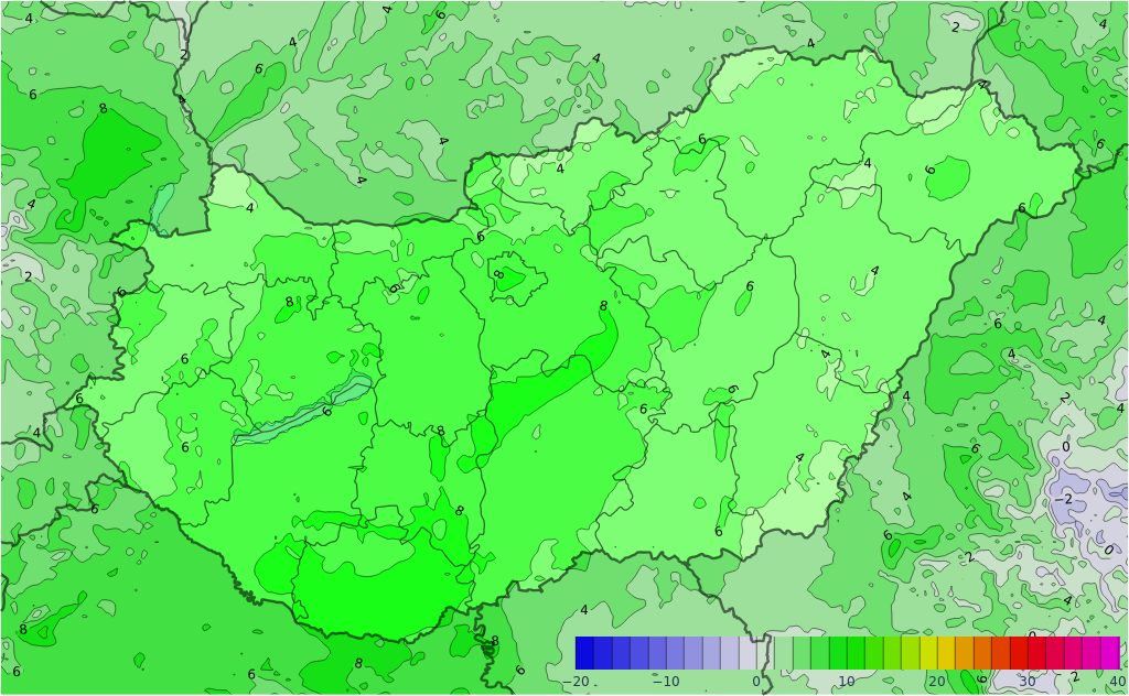 A hétvégén az Atlanti-óceán partvidékének közelében újabb intenzív ciklon jelenik meg, amely Észak-Afrika irányából rendkívül enyhe levegőt szállít a kontinens fölé. A magasabb légrétegekben 10-12 fokkal is melegebb lehet az átlagosnál. Itt a felszínen azonban ebből igencsak keveset fogunk érzékelni, hiszen az enyhülés ismét hatalmas ködmezők kialakulását eredményezi Közép-Európában. Viszont Nyugat-Európában az erős légmozgás miatt nem tud tartós köd kialakulni a maximumhőmérséklet még a 15-20 fokot is elérheti.