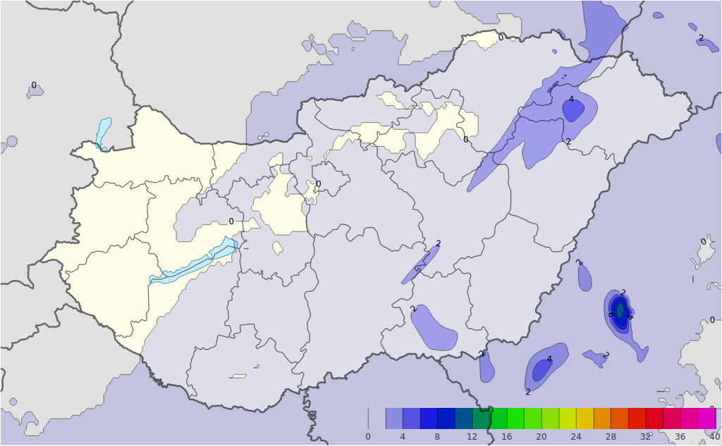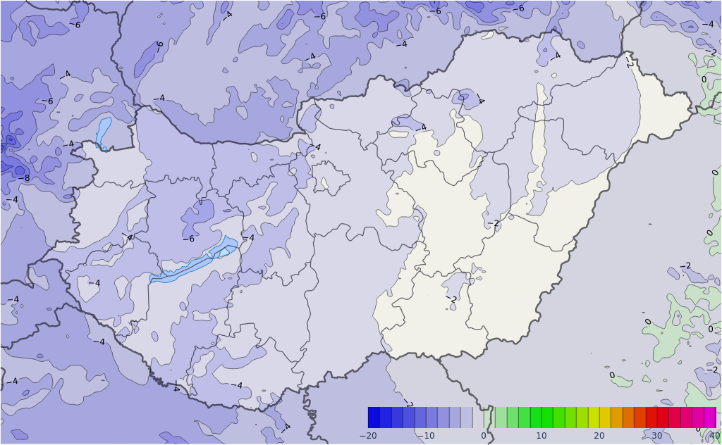 Az ország nagy részén havazás várható, kedd reggelig nagy területen valószínű jelentősebb hótakaró kialakulása. Általában 5-10 cm-es hóréteg valószínű, de északnyugaton (Kisalföld, Sopron térsége) ennél kevesebb (< 5 cm), ugyanakkor kiemelten délen és az Alföld középső részein akár 10-15 cm is hullhat. A HungaroMet figyelmeztetést adott ki hétfőre az öt centimétert meghaladó friss hó miatt Győr-Moson-Sopron, Nógrád és Borsod-Abaúj-zemplén megye kivételével az egész országra.