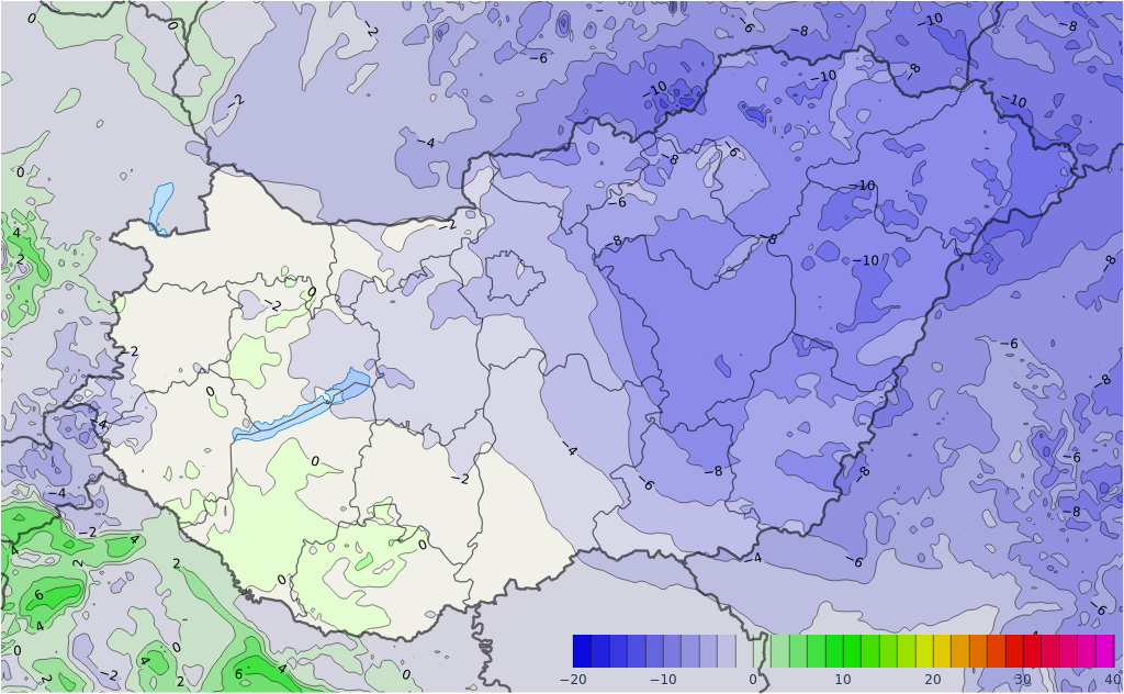 Az ország jelentős részén kritériumok szerinti veszélyes időjárási jelenség valószínűsége alacsony. Szerda este az északkeleti, főként határhoz közeli területeken gyengébb (jellemzően néhány tized mm) ónos eső, kisebb havazás előfordulhat.