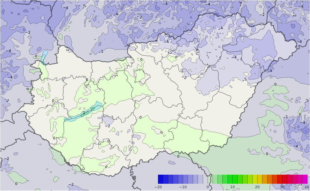 Január 1-jére, az újév első napjára a folyamat beteljesedik: a Kárpát-medence teljes egészében a negatív hőmérsékleti anomália zónájába kerül. A korábbi pozitív eltérést egy mélyen az átlag alatti hőmérsékletű időszak váltja fel, ami azt jelenti, hogy az évet igazi, kemény téli időjárással, éjszakai fagyokkal és nappali hideggel kezdjük.