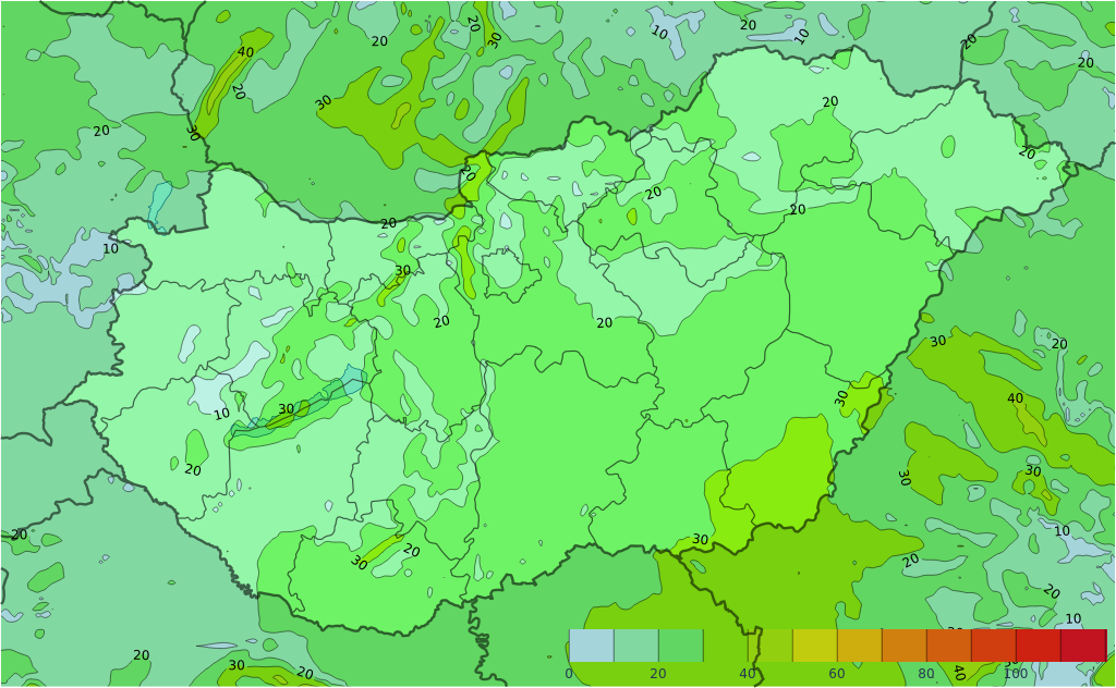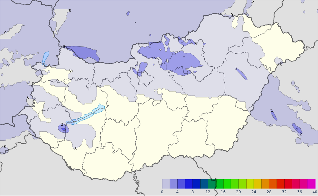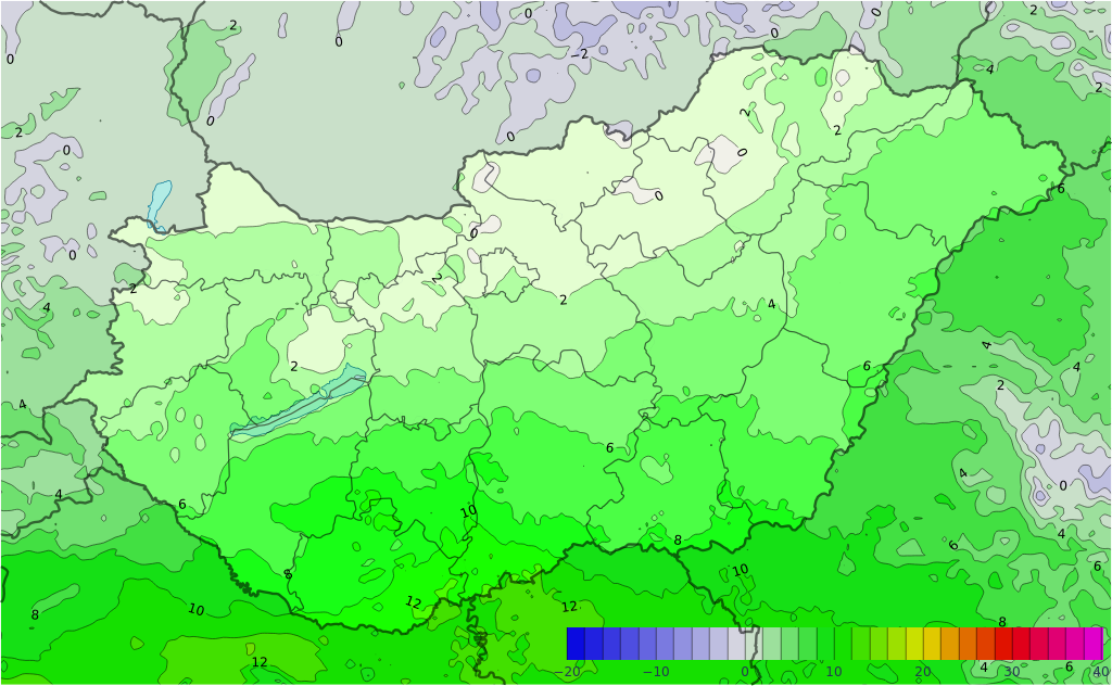 Az alábbi ábrán a következő 10 napban, a Velencei-tó környékén várható csapadék mennyisége látható az ECMWF modell előrejelzése alapján. Csupán 0-1 milliméter valószínű, ez biztosan nem fog segíteni a fennálló problémán.