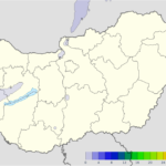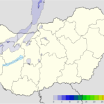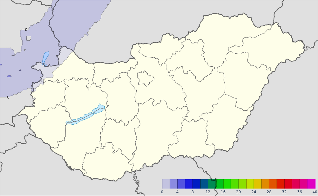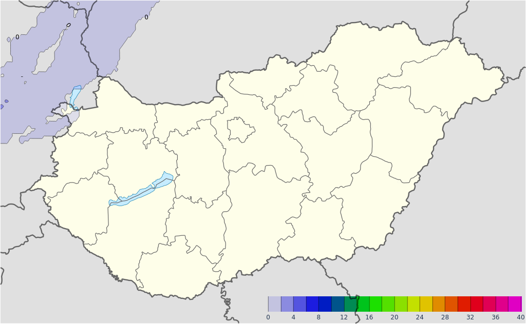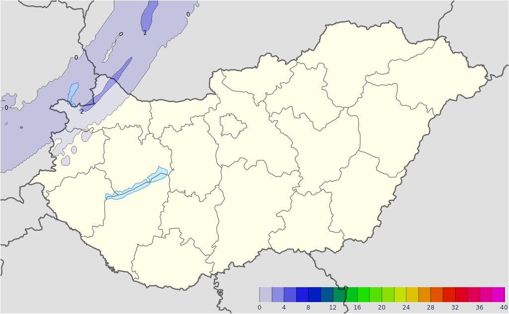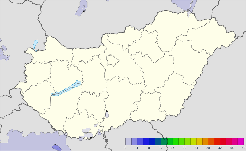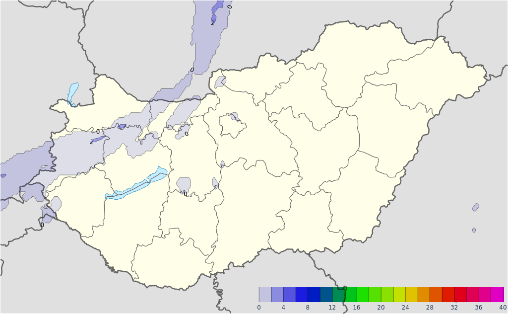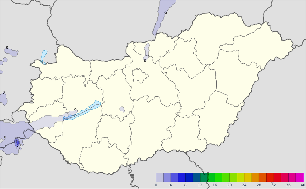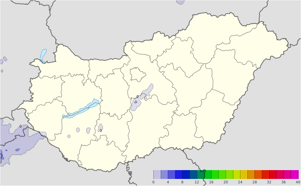 A térképek a csapadék intenzitását jelöli. A világoskék árnyalatok gyenge, a sötétebbek erősebb csapadékintenzitást jeleznek.