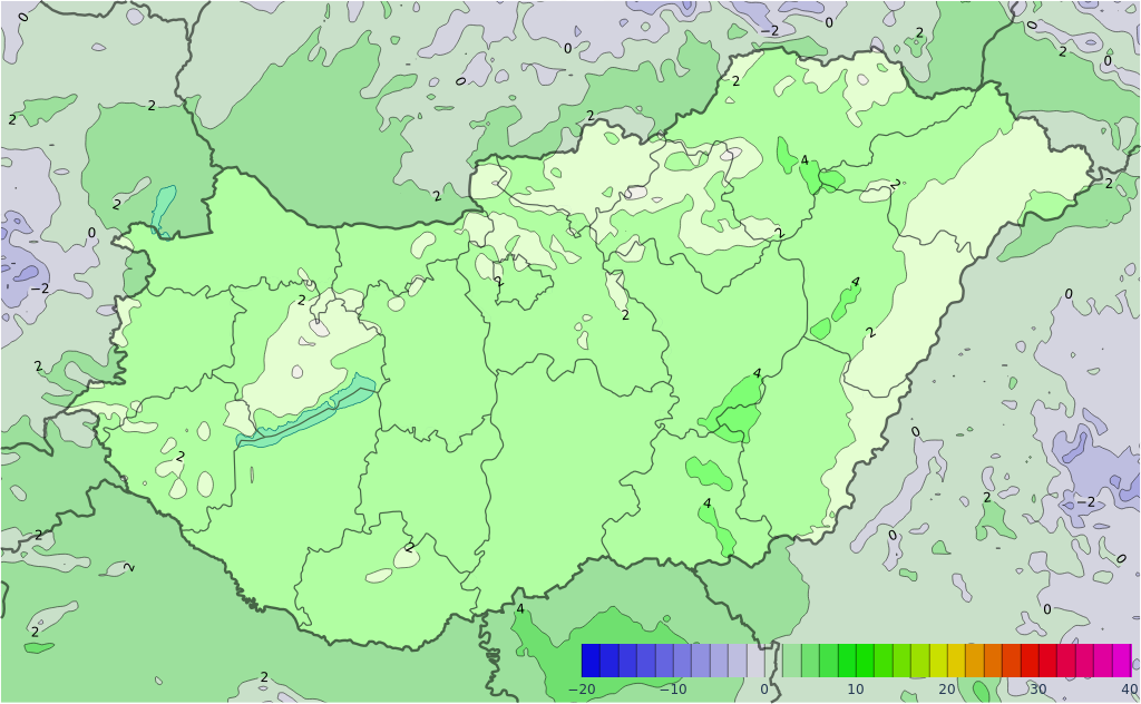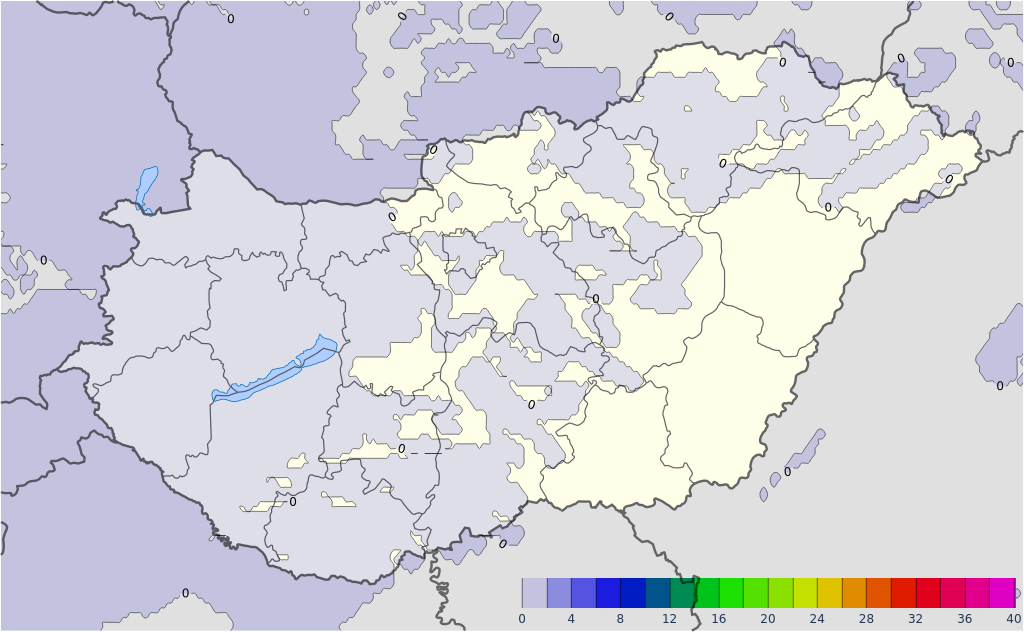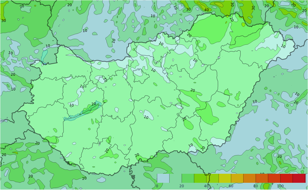 Az északnyugati, nyugati tájakon már éjfélig jelentős mennyiségű csapadék (~15-25 mm) valószínű. Sokfelé megélénkül, a Dunántúlon megerősödik, az északnyugati, nyugati tájakon viharossá fokozódik a szél.