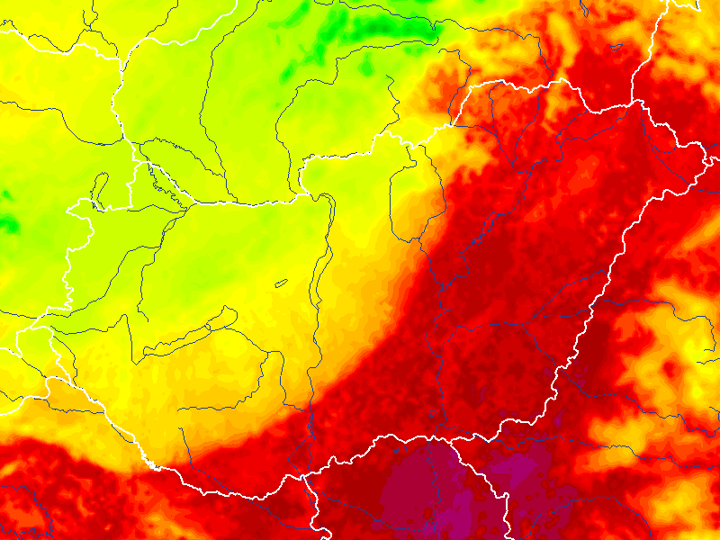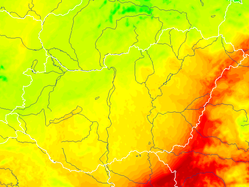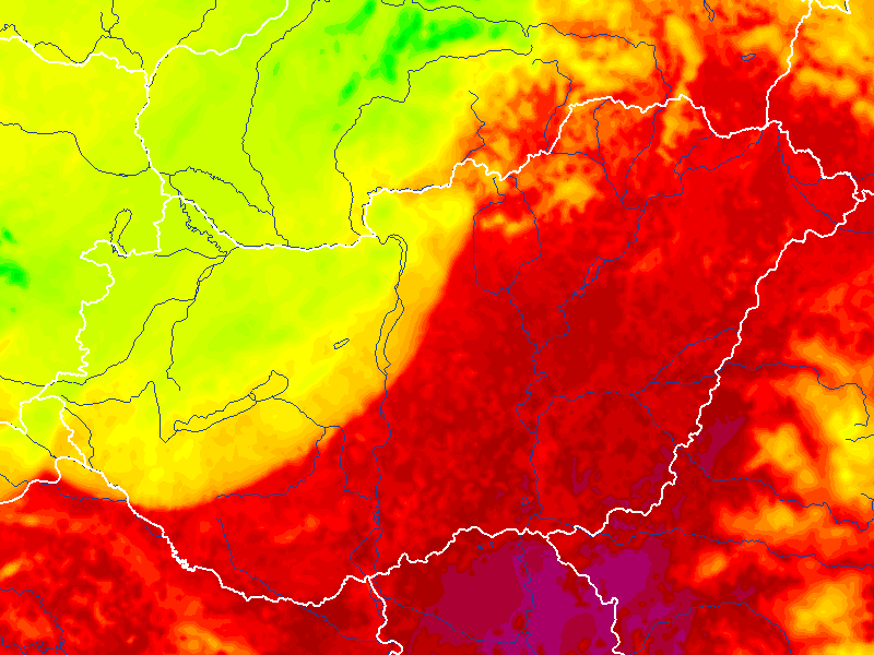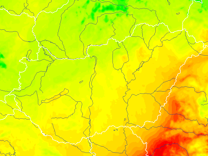 Nagyrészt gomolyfelhős, napos idő várható, de északnyugat felől hidegfront érkezik, amely napközben főként az északnyugati tájakon okozhat – néhol tartósan – felhős időt. Utóbbi területen többfelé valószínű zömmel eső, zápor, míg a front mentén, illetve annak előterében zivatarok is kialakulhatnak. Legkisebb eséllyel a déli országrészben eshet. A délnyugati szél többfelé megélénkül, megerősödik, majd az északnyugatira forduló szél átmenetileg több helyen viharossá fokozódik. Emellett zivatarok környezetében is lehetnek viharos széllökések. A legmagasabb nappali hőmérséklet 22 és 35 fok között várható, északnyugaton mérhetjük a legalacsonyabb, míg délkeleten a legmagasabb értékeket. A front mögött napközben gyorsan csökken a hőmérséklet. Késő este 15, 22 fok valószínű.