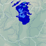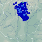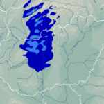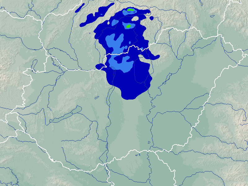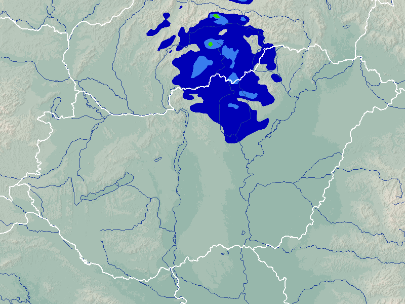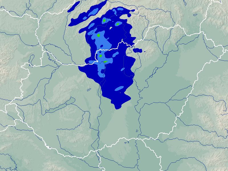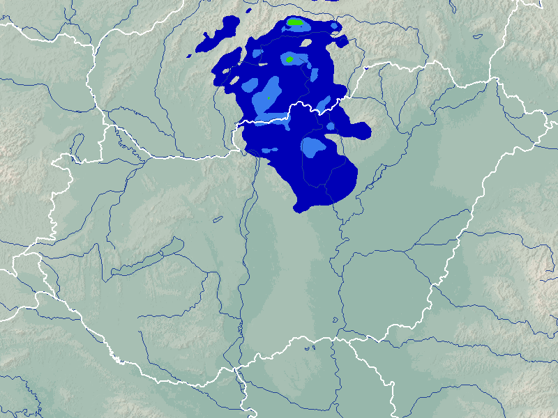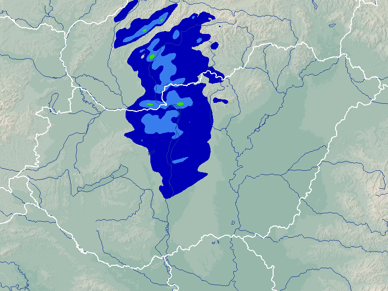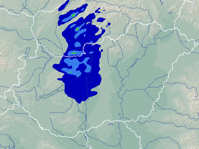 A térképek a csapadék intenzitását jelöli. A kékes árnyalatok gyenge, a zöldes közepes, míg a sárga és piros színek erős csapadékintenzitást jeleznek.