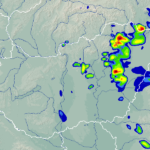 Vasárnap délelőtt a Nyugat-Dunántúlon az éjszakai kiadós esőzést követően egyre csökkenő intenzitással még csepereghet, szitálhat az eső, majd a déli órákra ott megszűnik a csapadéktevékenység. Eközben a középső és keleti országrészben magasra törnek a gomolyfelhők, amelyekből a délután és az este folyamán többfelé alakulnak ki záporok, zivatarok. Felhőszakadásra a legnagyobb esély a Tiszántúl északi felén, valamint az Északi-középhegységben mutatkozik, utóbbi területen villámárvíz is kialakulhat. Késő estétől megnyugszik a légkör, leépülnek a viharfelhők.