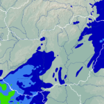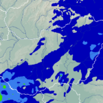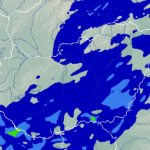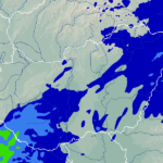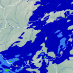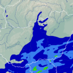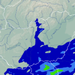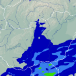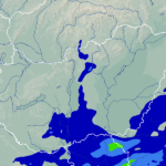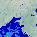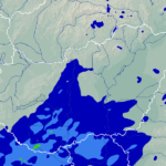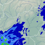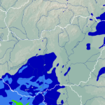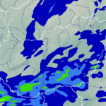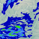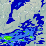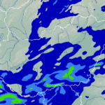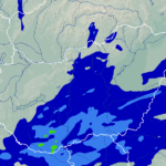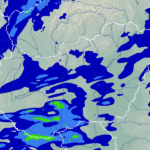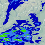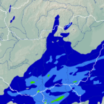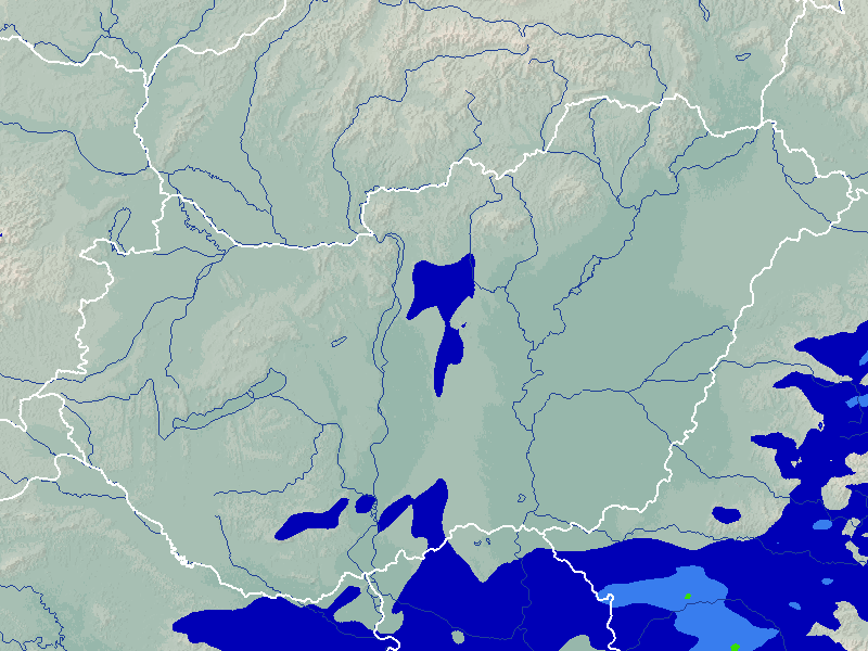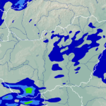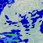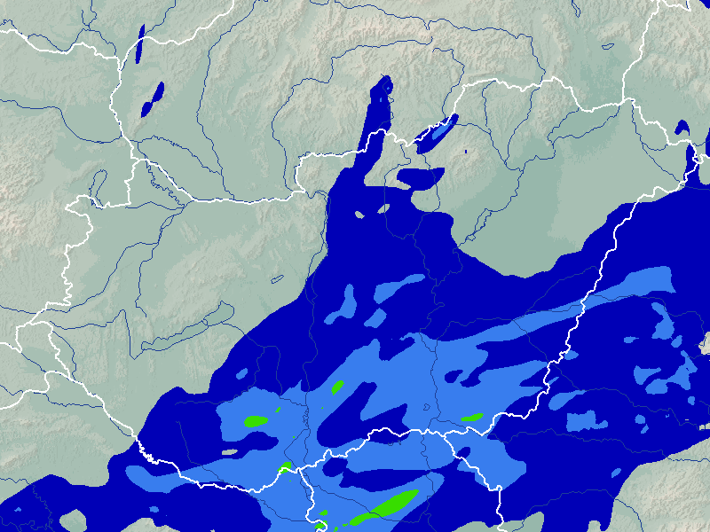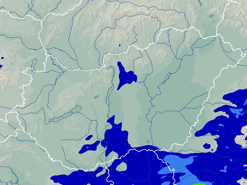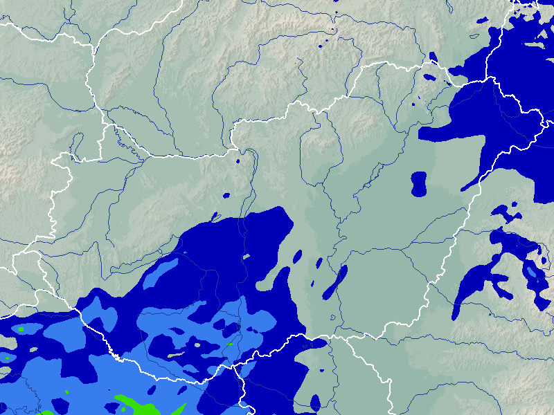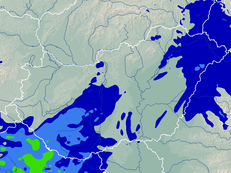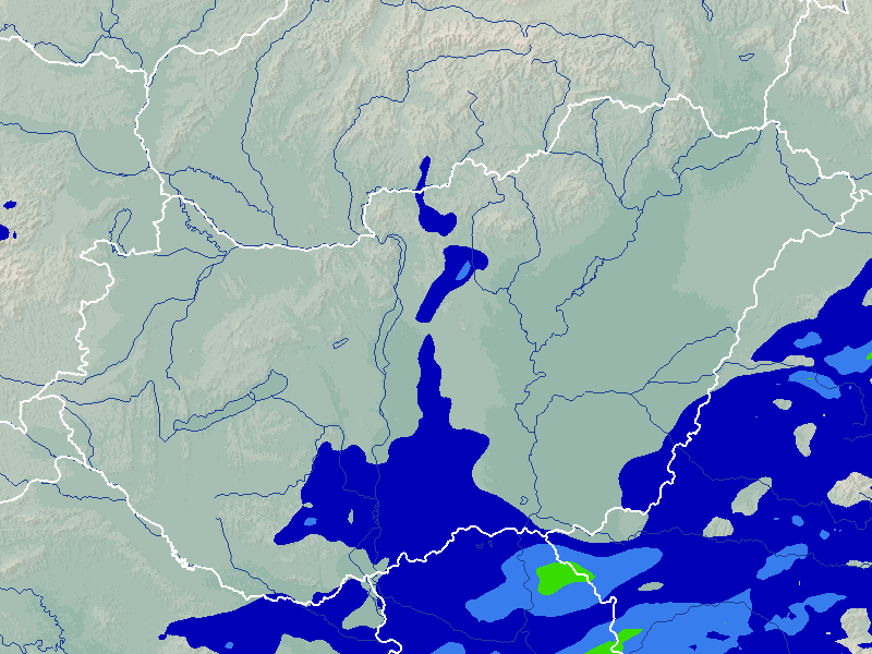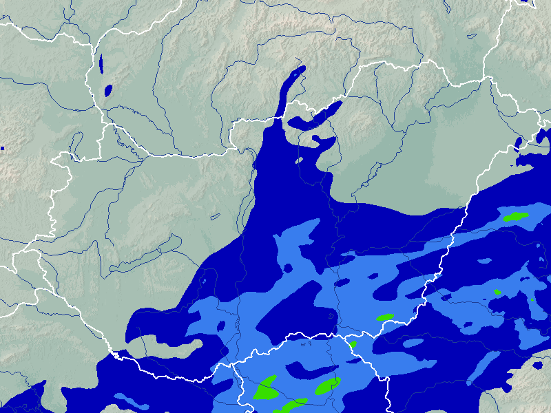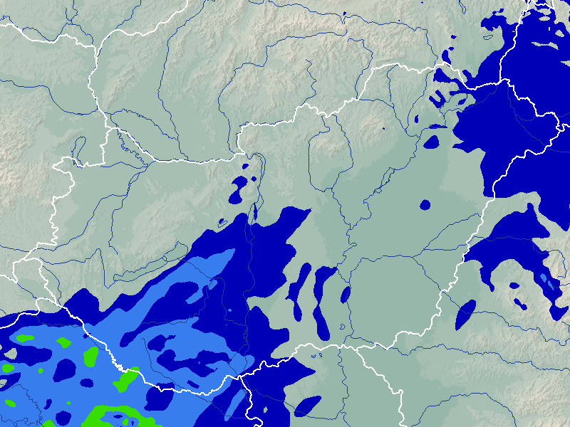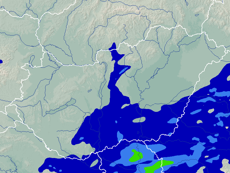 A térkép a csapadék intenzitását jelöli. A kékes árnyalatok gyenge, a zöldes közepes, míg a sárga és piros színek erős csapadékintenzitást jeleznek. Havazás esetén gyengébb csapadékintenzitás mellett is lehet sűrű hóesés.